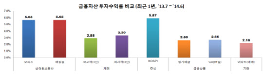 연간 투자수익률은 오피스빌딩 5.63% 매장용빌딩 5.65%로 같은 기간 채권(국고채 2.88%·회사채 3.3%)과 금융상품(정기예금2.6%) 보다 높은 수익률을 기록했다.